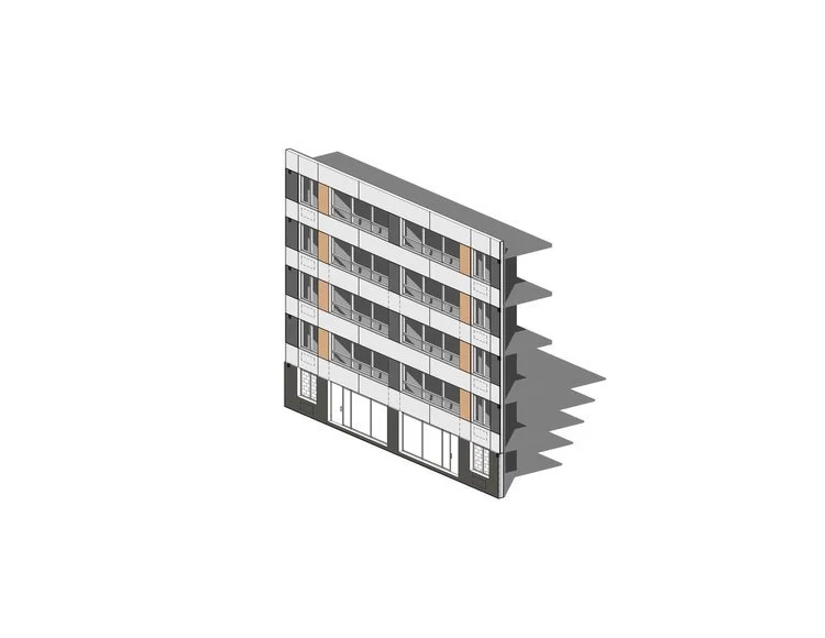 The existing building envelope is primarily composed of 90mm face brick (stud back up wall) and punched aluminum windows of various dimensions repeating along each façade. The north façade is distinguished by deep re-entrant balconies, while the south façade has very prominent solariums along its length. The proposed envelope design breaths new life into the existing building by addressing the deteriorating façade, and replacing the existing aluminum windows and doors that have reached the end of their life.