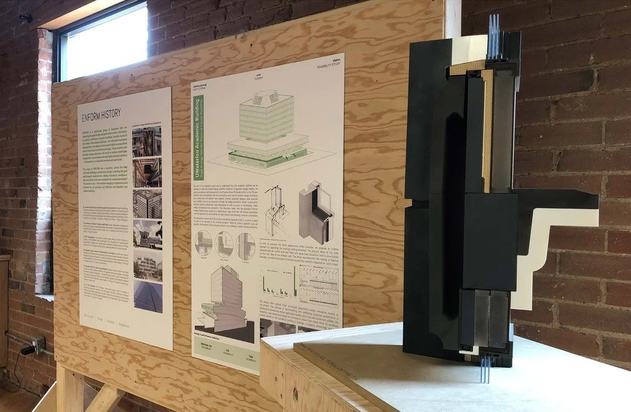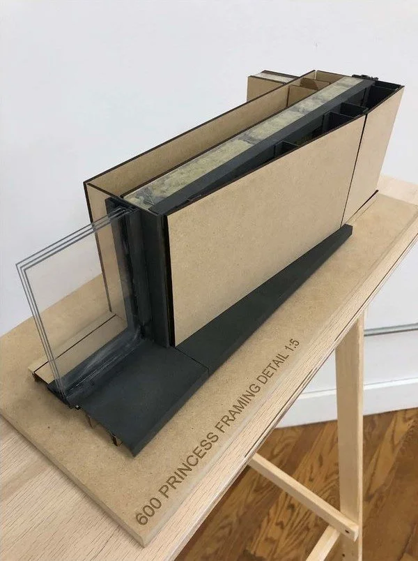 ENFORM in collaboration with Toronto Metropolitan University (TMU) developed three physical models exploring high-performance detailing and zero carbon buildings. A combination of laser cutting and 3D printing were used to fabricate the models ranging in scale from the 1:5 detail to the 1:50 building. The models were used as a research and learning opportunity for the students, as well as presentation materials for ENFORM to communicate our ideas around high-performance detailing. We would like to thank the Department of Architectural Science at TMU and Business + Higher Education Roundtable for their generosity and assistance with this project, and to all of the individual students and research assistants who participated.