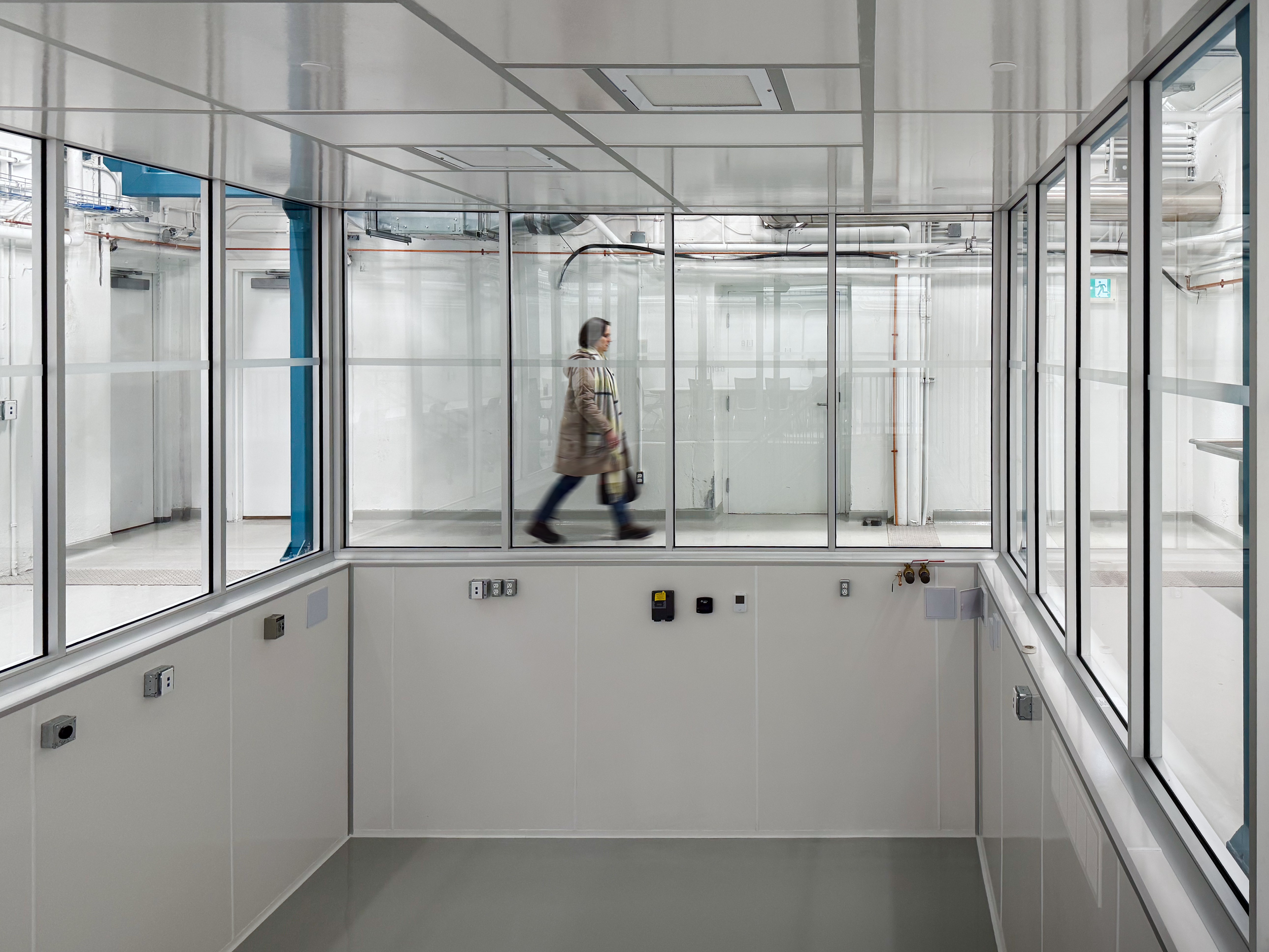 The existing space was selected due to the presence of both an overhead gantry crane and +/-1.8m deep pit in the middle of the room. A Class 10,000 cleanroom has been constructed in the pit to facilitate the work of the researchers, and the added height afforded by the pit will allow the GIRMOS instrument to be lifted and rotated to mimic real-world operating conditions.